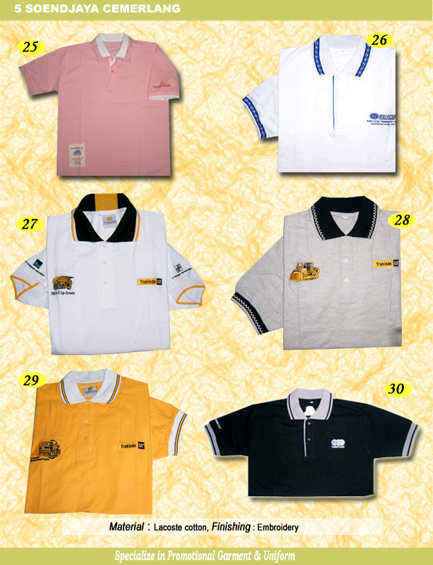 | February 28, 2011 18:54 We are Specialist in Promotional Garments - Uniforms Head Office PT Soendjaya Cemerlang Ruko Duri Kepa Permai I, 6 Jl Sodetan Kali Sekretaris [Belakang Indosiar] Duri Kepa Jakarta 11510 Indonesia Phone +62 21 565 9671 Phone +62 21 7077 0541 Fax 62 21 567 4559 Marketing & Sales Domestic International Administrative Visitor |